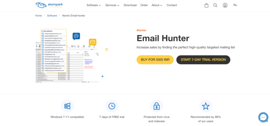 - Its specialized email crawlers search for email addresses on the Internet using the latest algorithms.