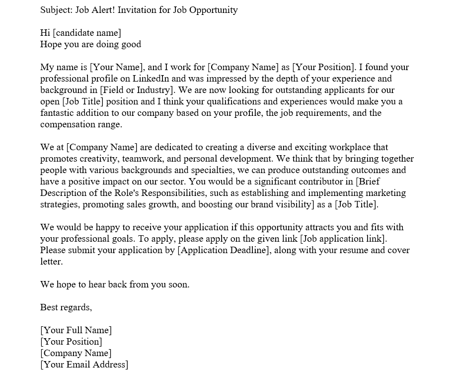If you want to contact potential applicants, this is one of the best LinkedIn InMail Templates for recruiters.